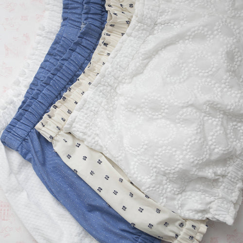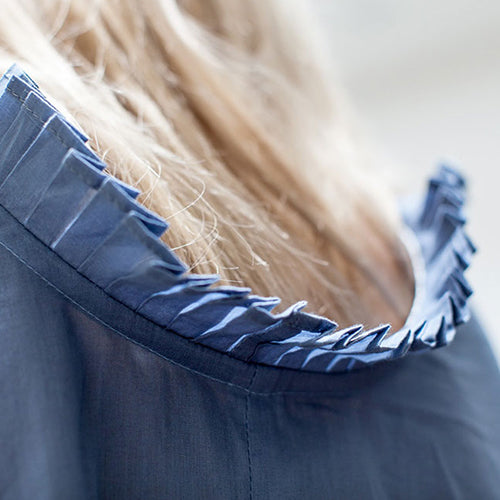 Wrap yourself in a thread. A thread intertwined in warp and trail. It will then become a pretty piece of fabric which, embellished with a few pleats, beautiful buttons or cut into pretty scallops, will transform your little naked bodies (which might otherwise catch a cold) into wonderful assets to face the last showers. Try it, you'll see!